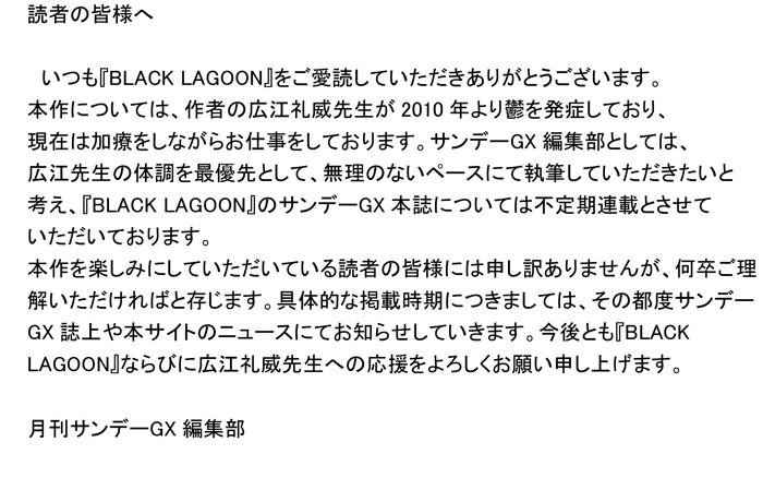 ブラックラグーン 作者プロフィール・近況のご報告